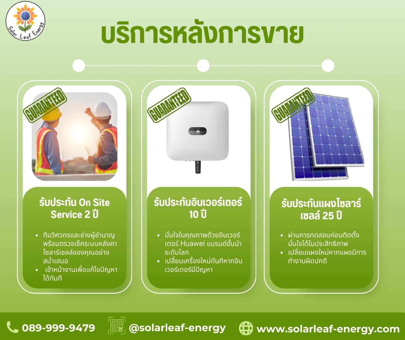 Solar Leaf Energy เข้าใจความกังวลของคุณ เราจึงมอบบริการหลังการขายที่ครอบคลุม ดังนี้