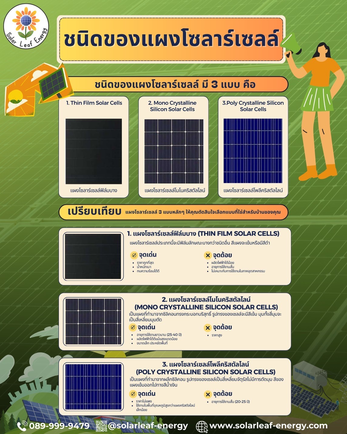รู้หรือไม่ว่า แผงโซลาร์เซลล์มีหลายแบบ แต่ละแบบก็มีข้อดี ข้อเสีย และเหมาะกับการใช้งานที่แตกต่างกัน วันนี้เรามีข้อมูลมาเปรียบเทียบแผงโซลาร์เซลล์ 3 แบบหลักๆ ให้คุณตัดสินใจเลือกแบบที่ใช่สำหรับบ้านของคุณ