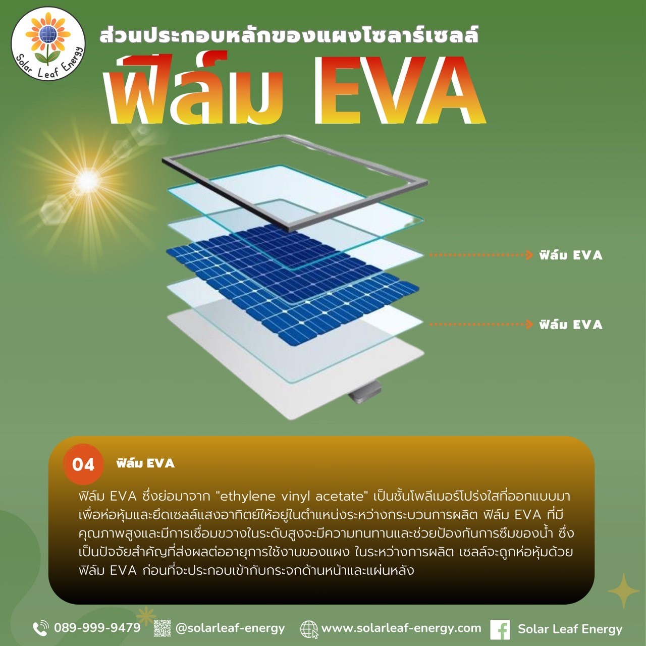 4. ฟิล์ม EVA: ชั้นโพลีเมอร์โปร่งใส ช่วยยึดเซลล์ในตำแหน่งและปกป้องจากความชื้น