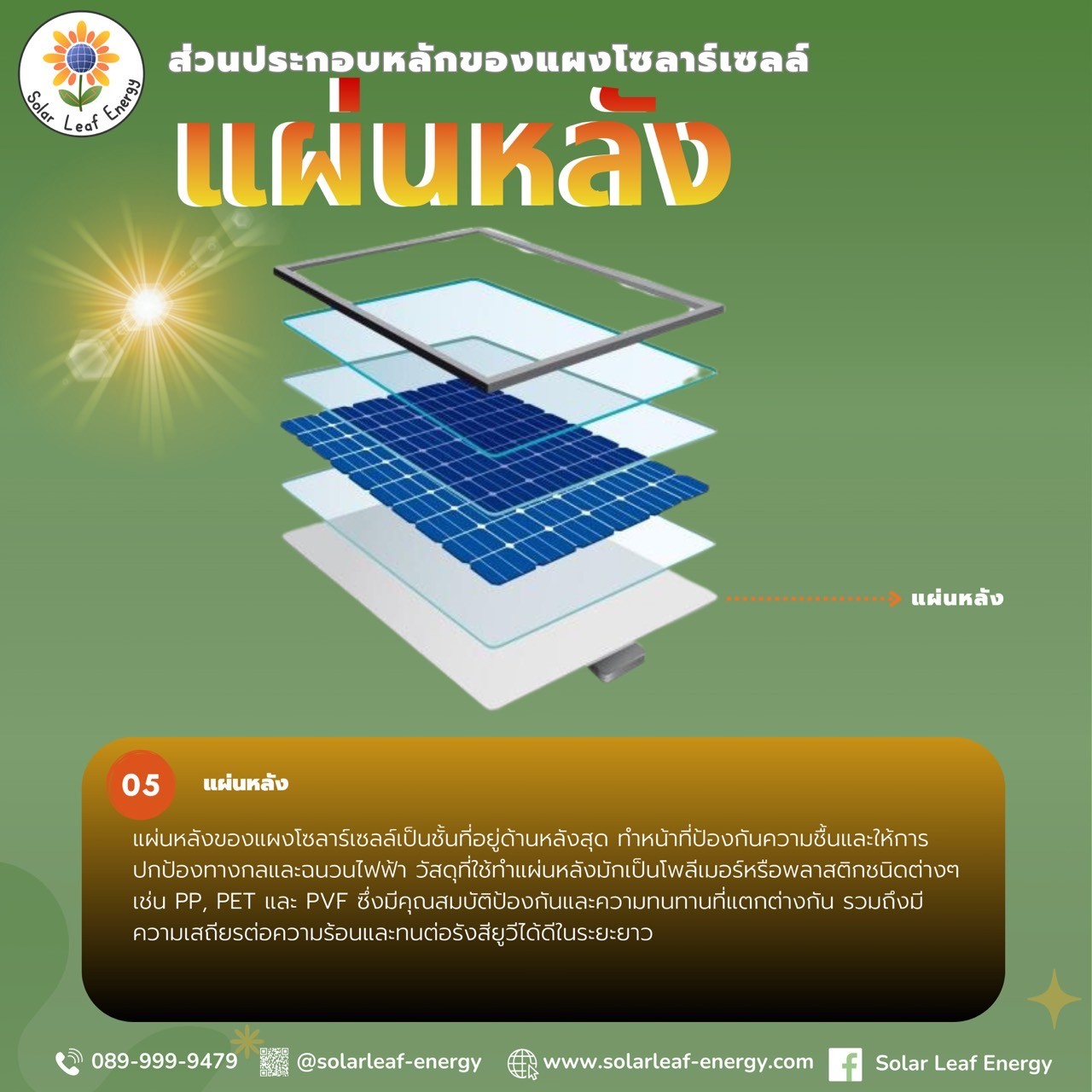 5. แผ่นหลัง: ชั้นสุดท้ายของแผง ทำจากวัสดุโพลีเมอร์หลายชนิด ป้องกันความชื้นและให้ความแข็งแรง