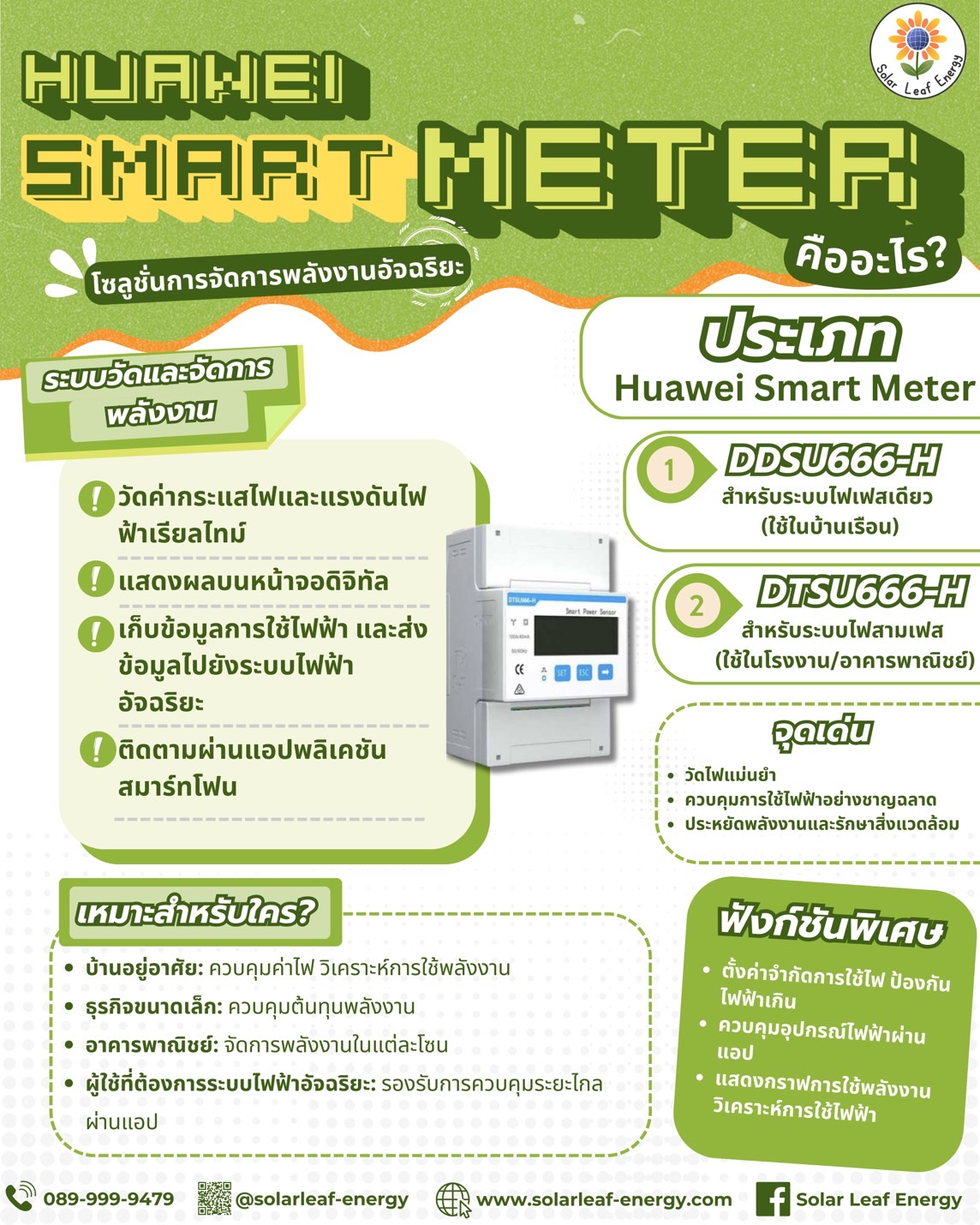 หากคุณกำลังมองหาวิธีจัดการพลังงานไฟฟ้าอย่างมีประสิทธิภาพ Huawei Smart Meter เป็นอีกหนึ่งตัวเลือกที่ช่วยให้คุณสามารถควบคุมและประหยัดพลังงานได้อย่างชาญฉลาด