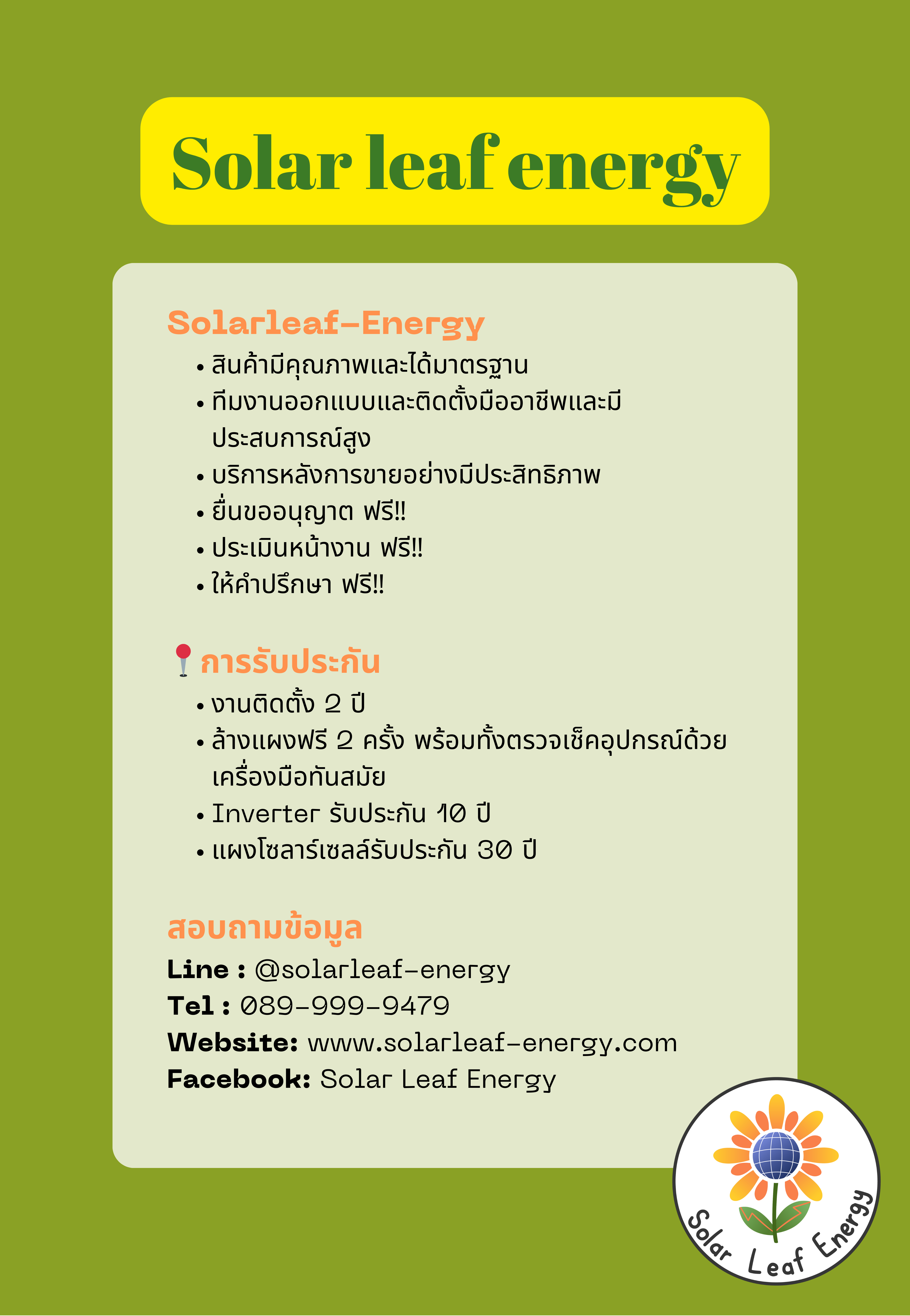 - แผงโซลาร์เซลล์รับประกัน 30 ปี