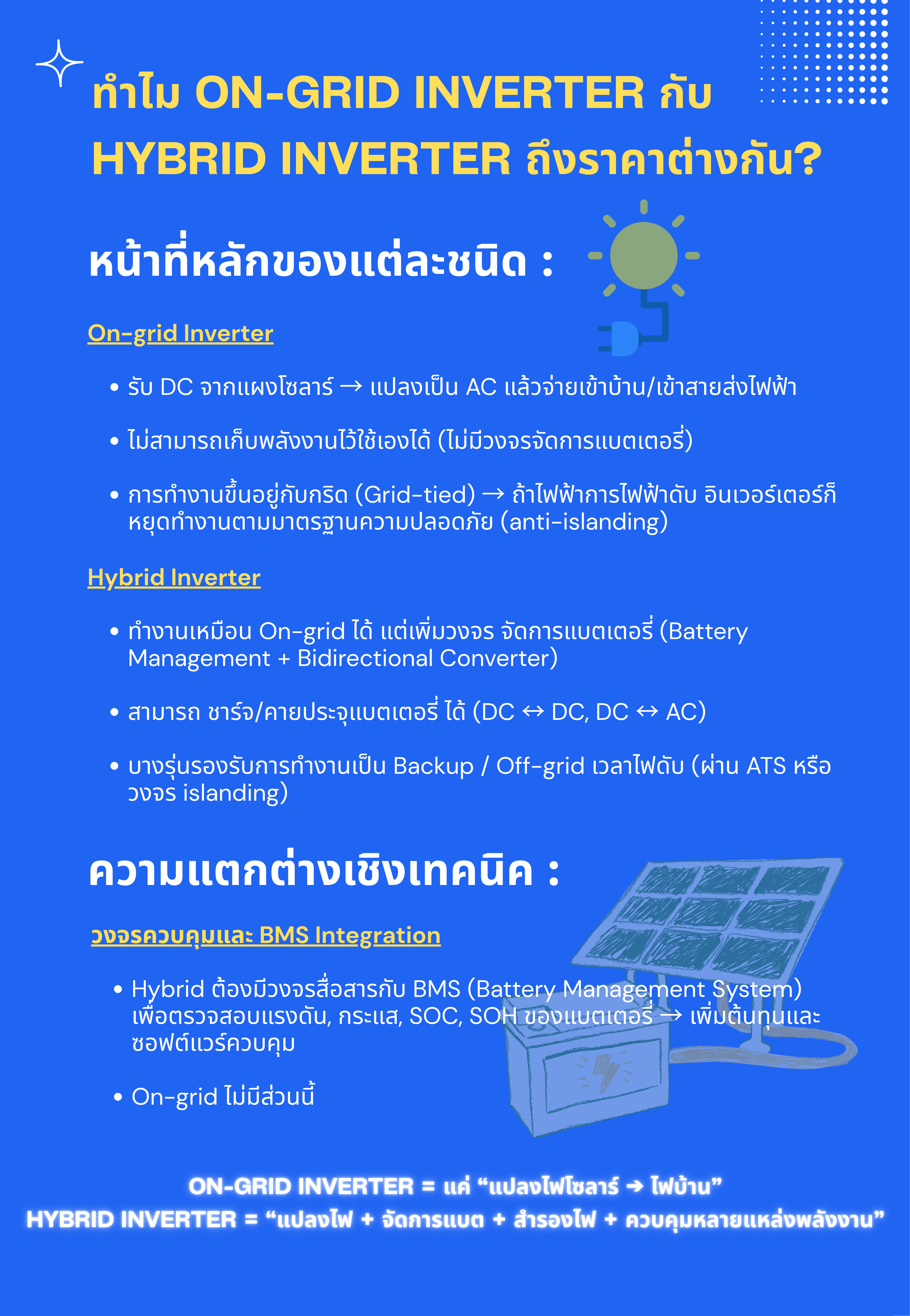 ทำไม On-grid Inverter กับ Hybrid Inverter ถึงราคาต่างกัน?