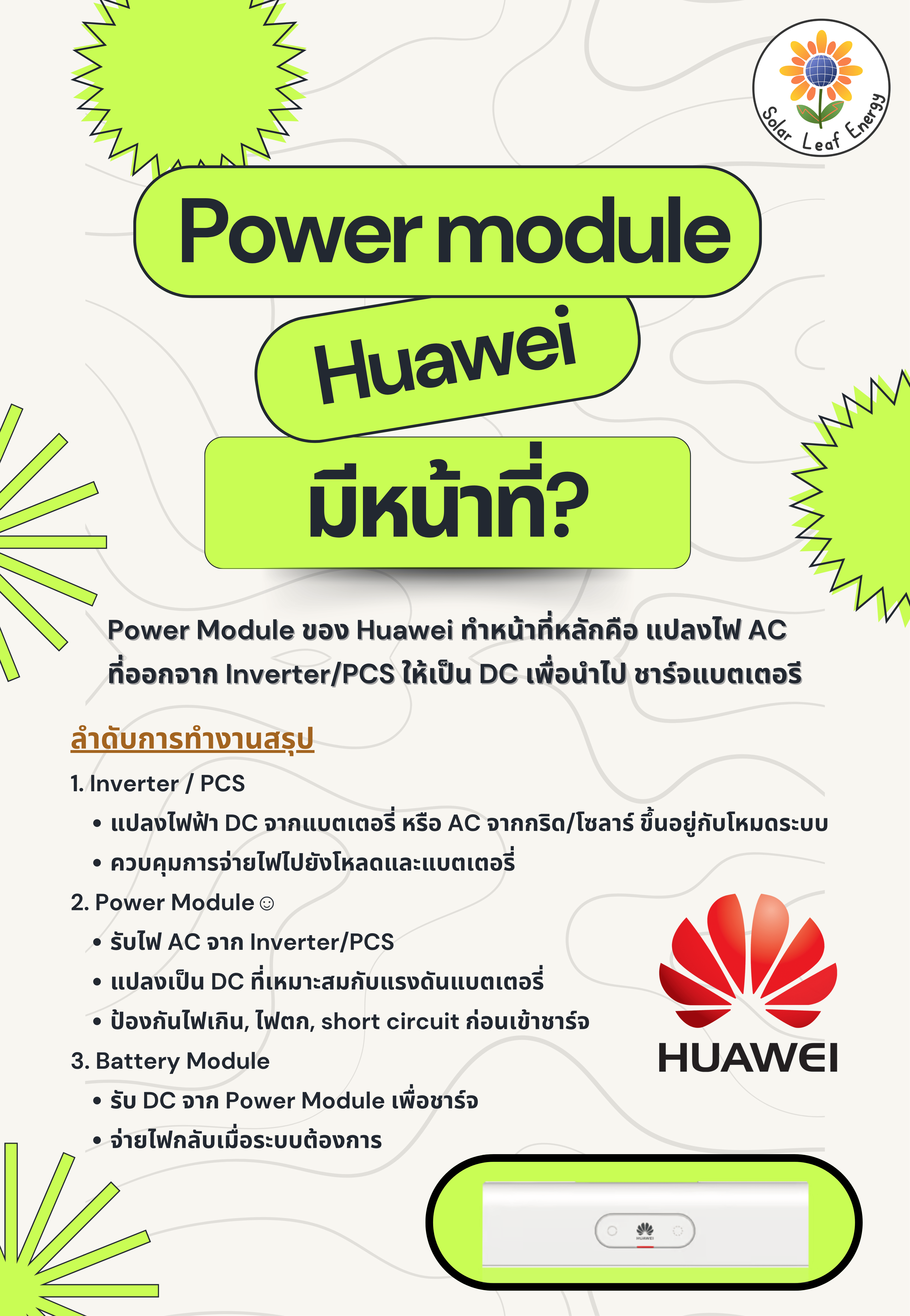 Power Module ของ Huawei ทำหน้าที่หลักคือ แปลงไฟ AC ที่ออกจาก Inverter/PCS ให้เป็น DC เพื่อนำไป ชาร์จแบตเตอรี