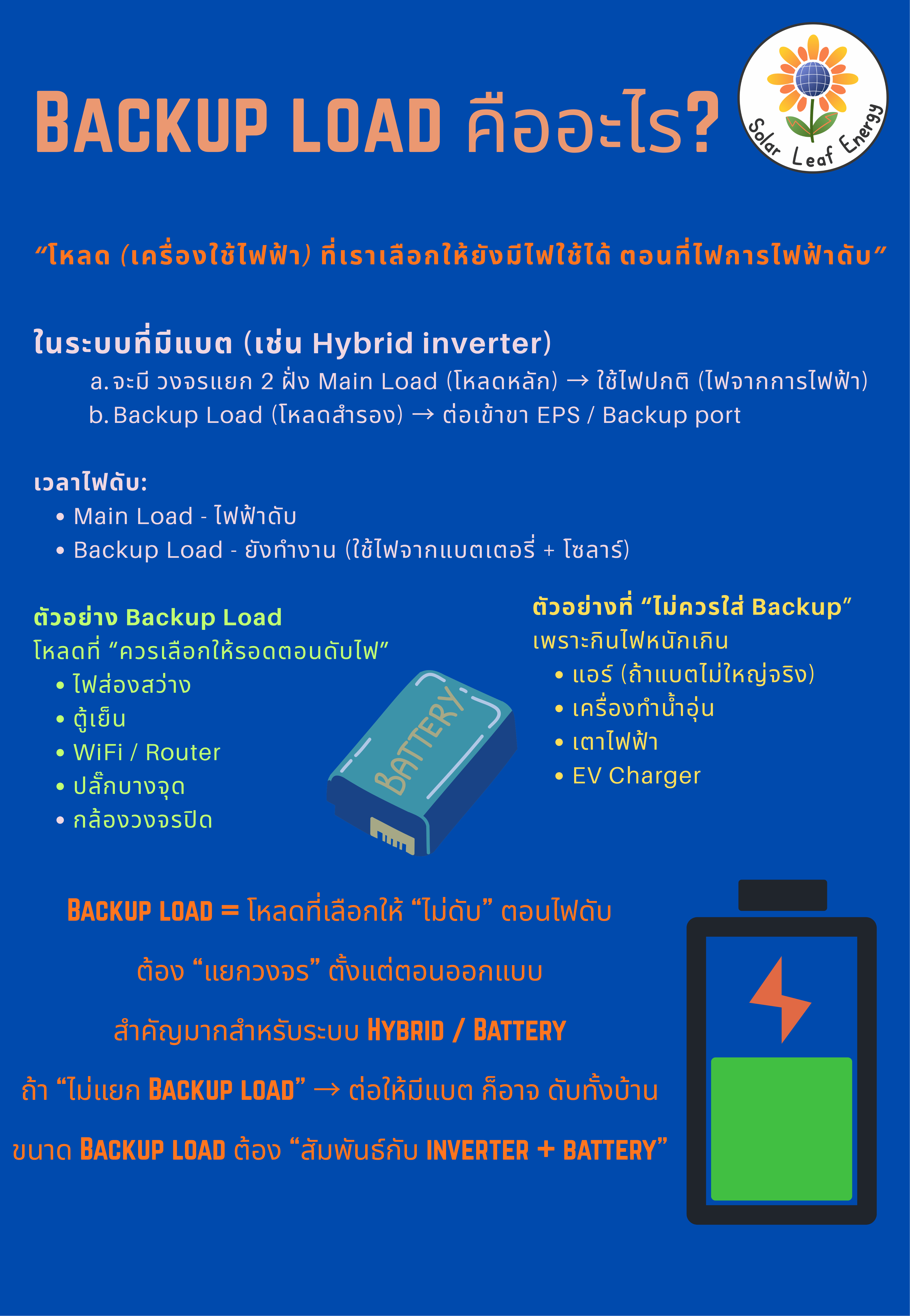 ขนาด Backup load ต้อง “สัมพันธ์กับ inverter + battery”